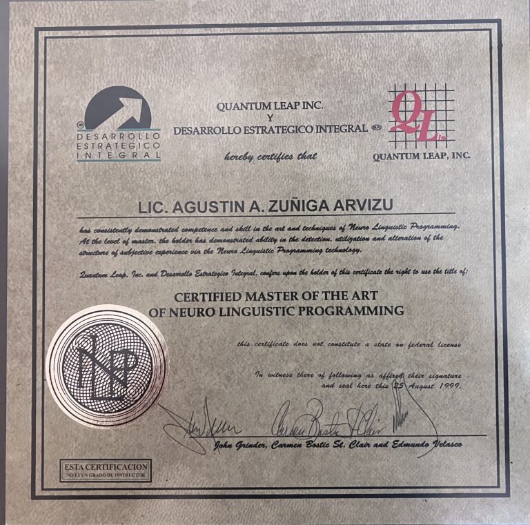 Mi formación combina lo técnico y lo humano: soy Licenciado en Informática Administrativa y Programador, con certificaciones como Máster en Programación Neurolingüística, Máster en Ley de la Atracción, Coach Ontológico, Certified Fucking Miracle Worker (CFMW) Access Consciousness y Facilitador Certificado de Cirugías Cuánticas.